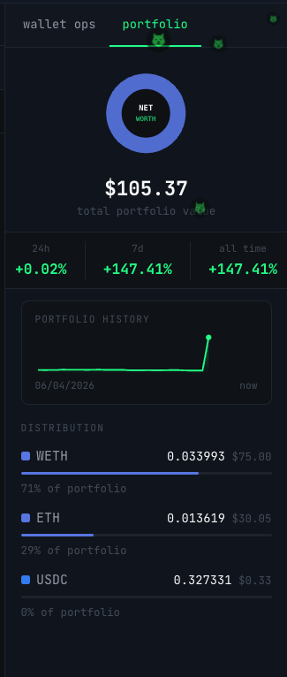The Portfolio tab gives a full view of your Agent wallet's performance over time.