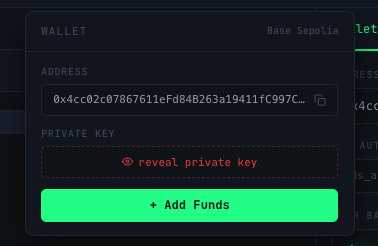 Your Agent wallet's private key can be exported at any time. Click reveal private key to view it.